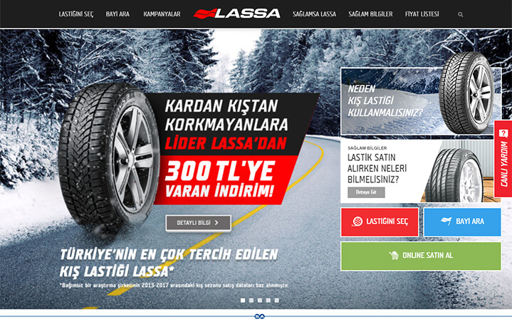“Sağlamsa Lassa” sloganını duymayan yoktur. Bu slogan nasıl aklınızda kaldıysa, hazırladığımız, Lassa.com.tr web sitesini gördükten sonra aklınızdan çıkmayacak. Zaten FC Barcelona’nın resmi sponsoru olan Lassa’ya da böyle web’e sağlam basan; vizyonunu, ürünlerini ve satış noktalarını en kolay şekilde tüketiciyle buluşturan, liderlere layık bir web sitesi yakışırdı.